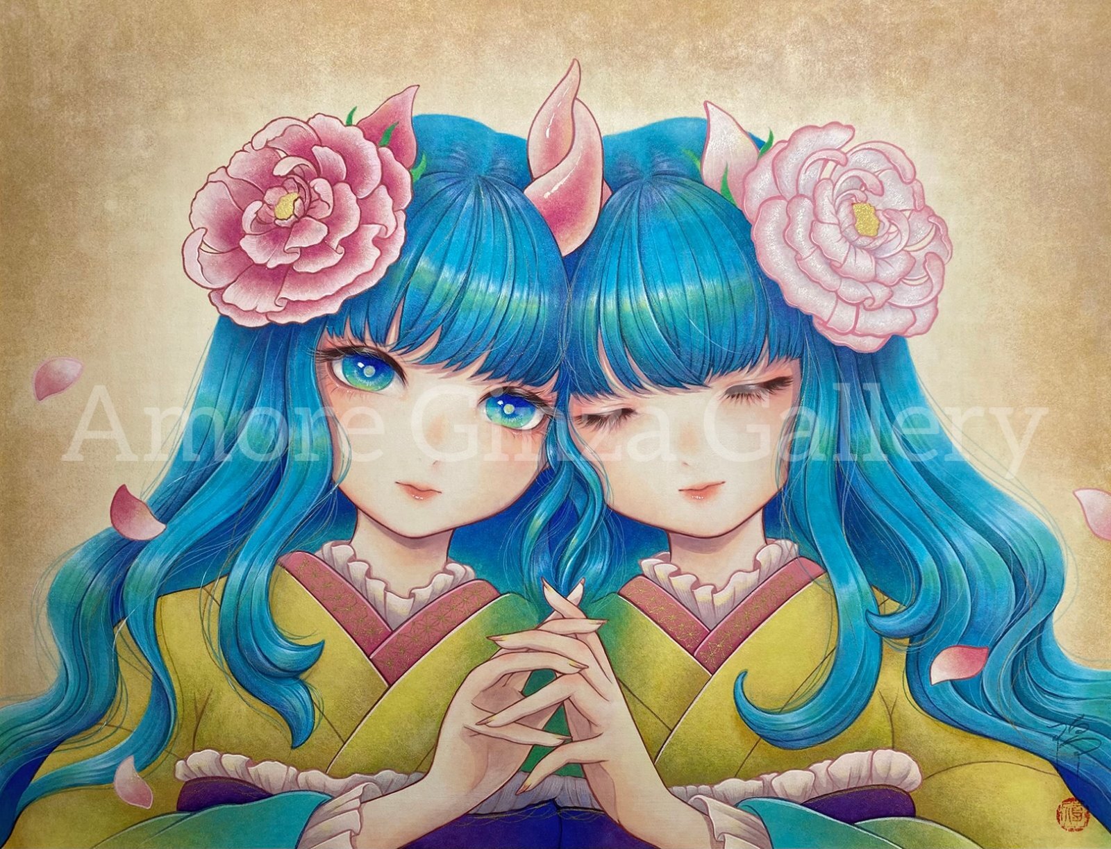素材・技法:パネル・岩絵具、墨、顔彩、金泥