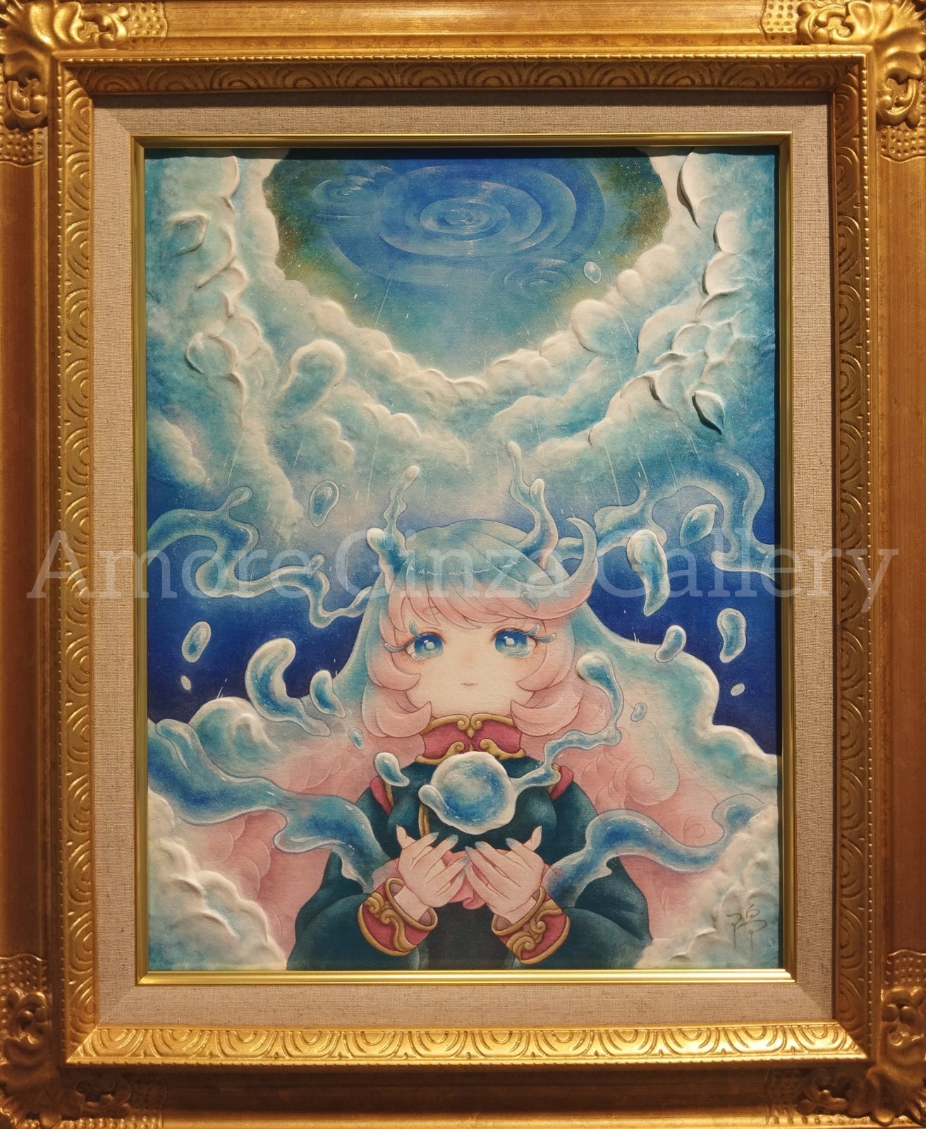 素材・技法:パネル・岩絵具、墨、顔彩、青金泥、石塑粘土