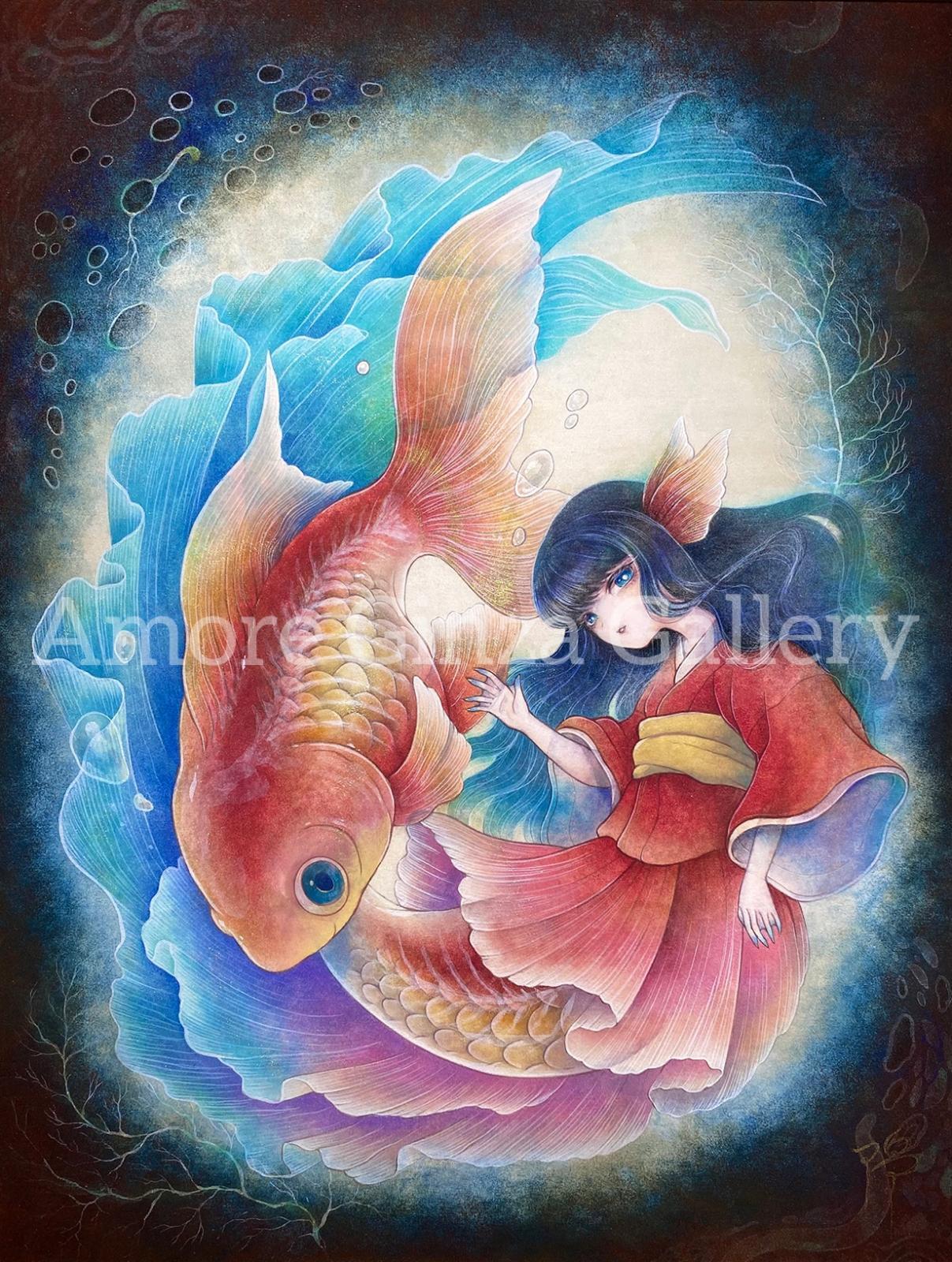 素材・技法:パネル・岩絵具、墨、顔彩、青金泥