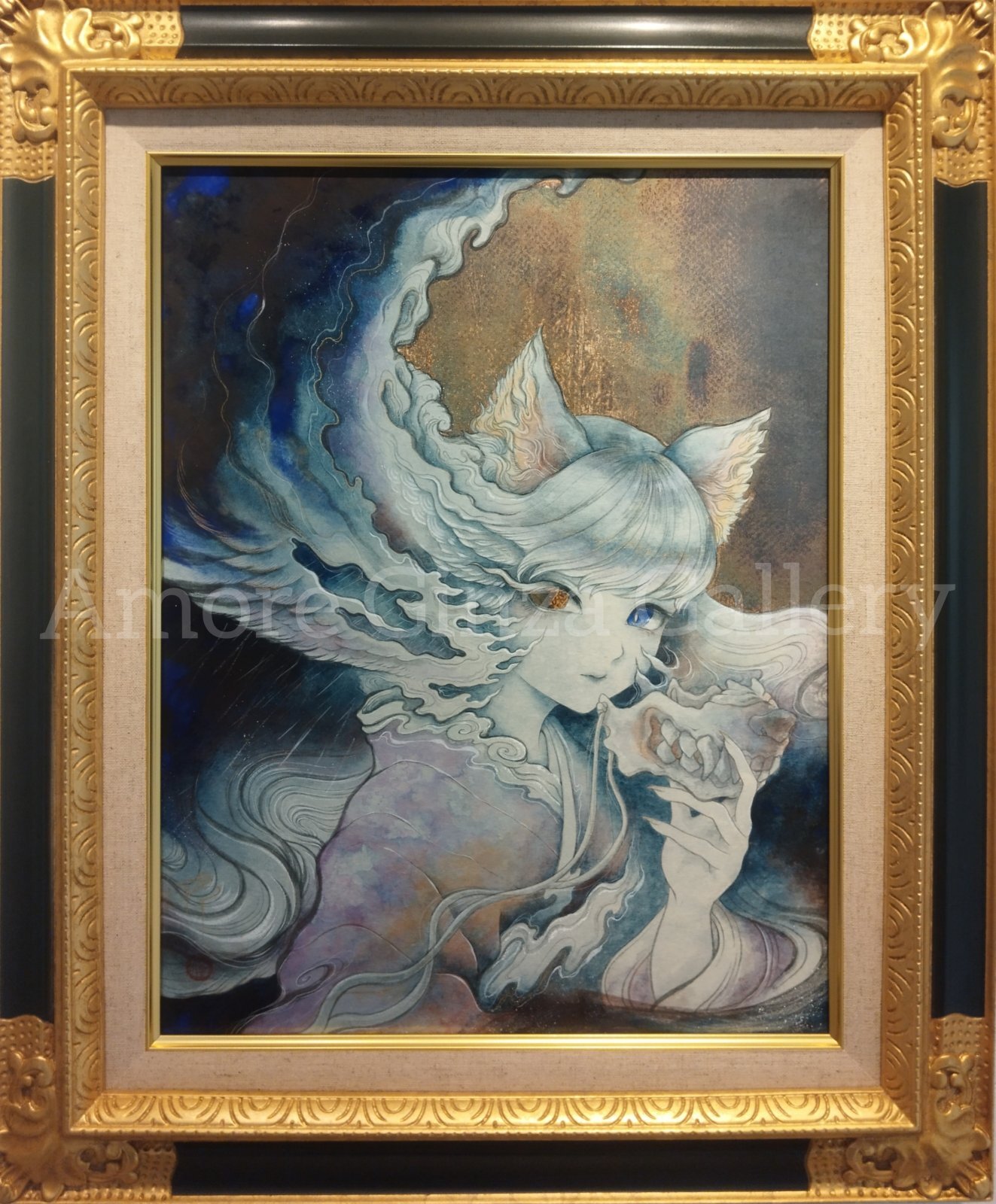 素材・技法:パネル・岩絵具、墨、顔彩、青金泥、銀箔、藍染麻紙