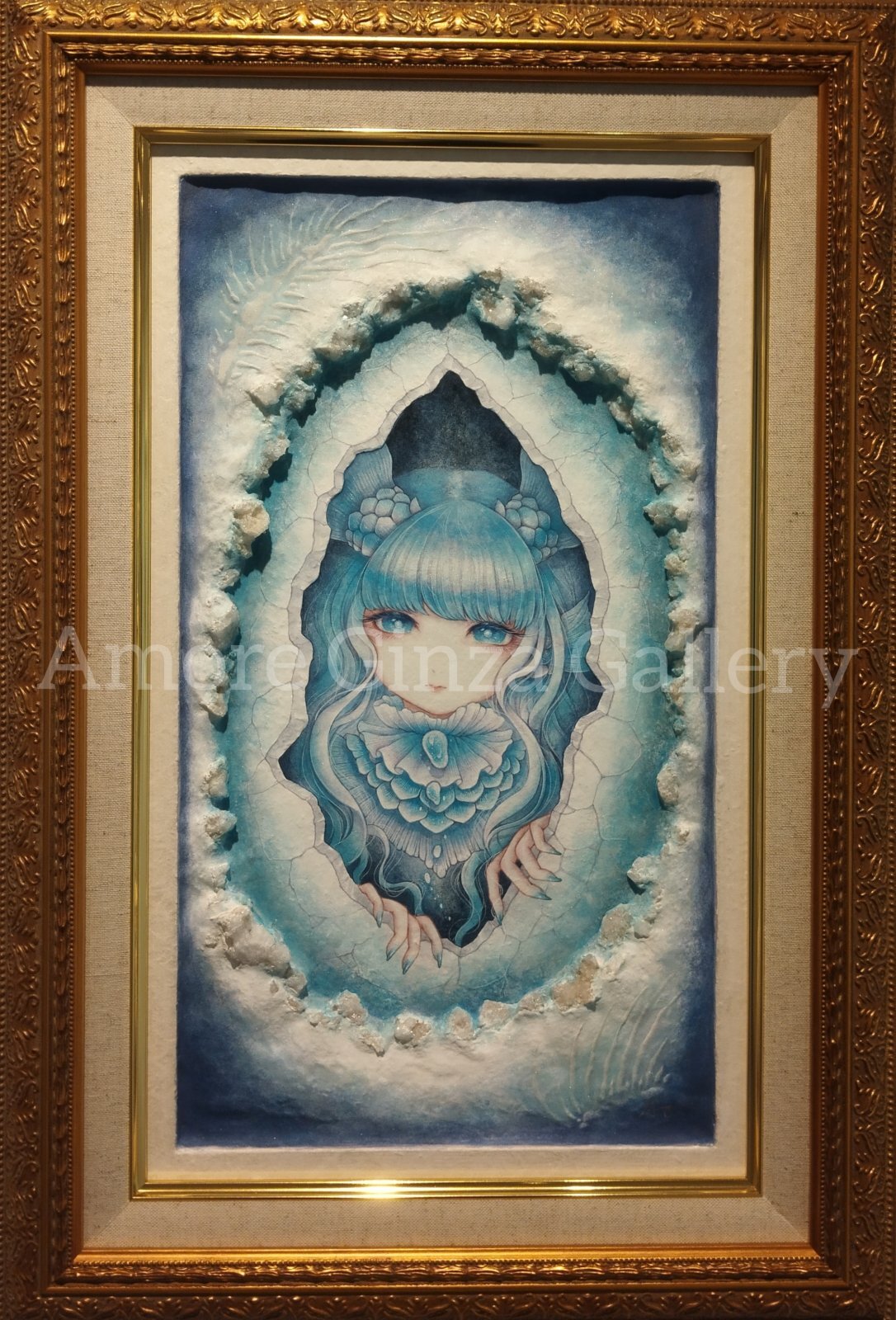 素材・技法:パネル・岩絵具、墨、顔彩、金泥、石塑粘土、オパール、カルサイト