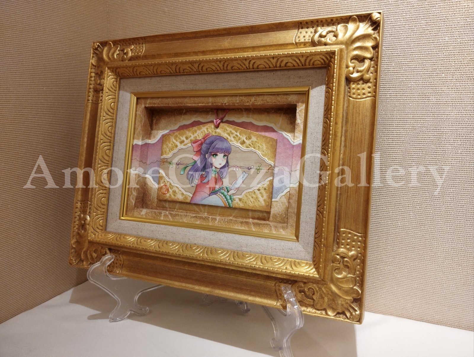 素材・技法:岩絵具、顔彩、金箔、金泥、石塑粘土