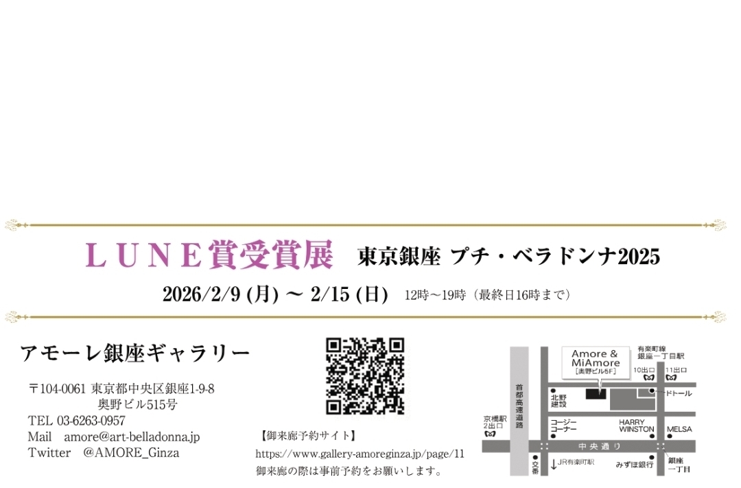 ◇アモーレ◇【 東京銀座プチ・ベラドンナ2025 LUNE賞受賞展 】2/9(月)〜15(日)